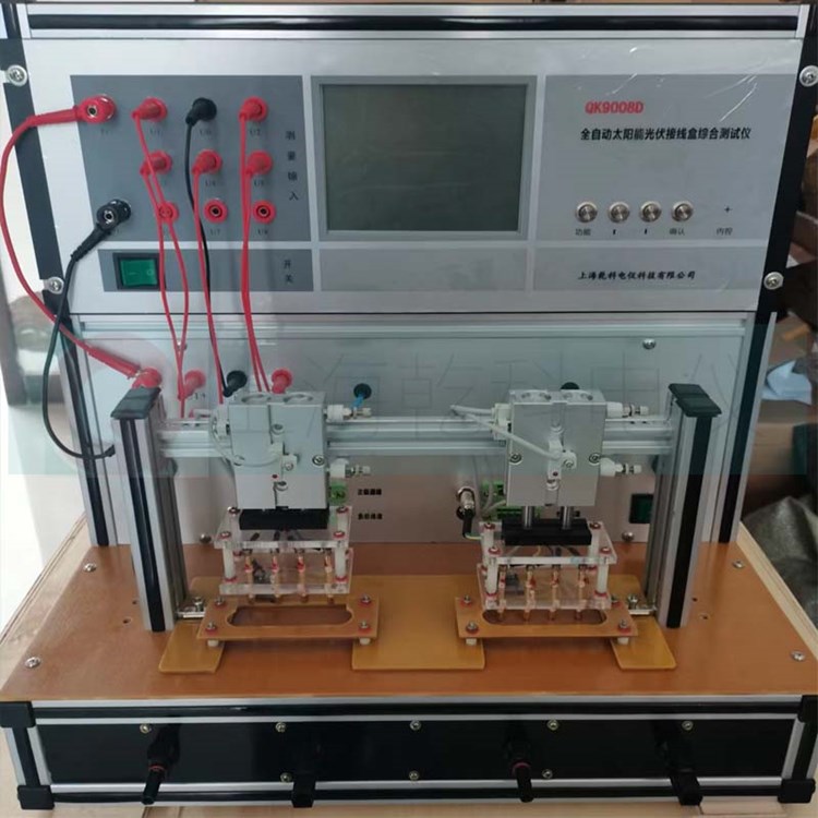 QK9008D全自动太阳能光伏接线盒综合测试仪,是我公司***新一款太阳能光伏接线盒检测的*测试仪器,该仪器是国内*款可以一次性测试接线盒的导通、及每个二极管的正向压降VF、反向漏电流IR、击穿电压VR、击穿电压差δVR以及引线导通直流电阻RJ等参数的接线盒测试仪器。能满足20-300W接线盒(1个至6个二极管)的测试所需的要求,并显示每个二极管的测量参数,自动判断接线盒合格或不合格。当检测到的接线盒不合格仪器自动报警,仪器显示不合格二极管的位置及不合格器件的参数。广泛应用于接线盒生产厂家和光伏组件生产厂家对接线盒电气性能参数的测试,以提高接线盒产品出厂的合格率和产品的质量。