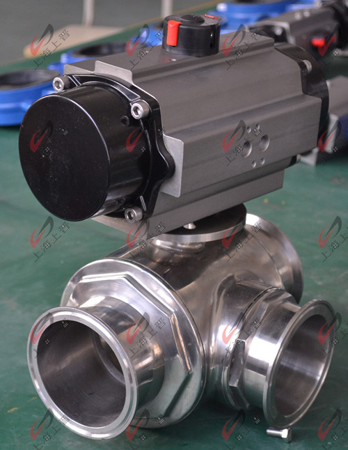 全包卫生级气动三通球阀经过精密检验流程和严格品质管理,采用内外抛光和灭菌处理。采用卡箍快装式连接,全包的F4密封,没有死角方便拆卸、清洗、维修,其中三通卫生级球阀适用于卫生级管路介质换向、分流、合流、混流。配气动执行器、电动执行器实现自动化控制。