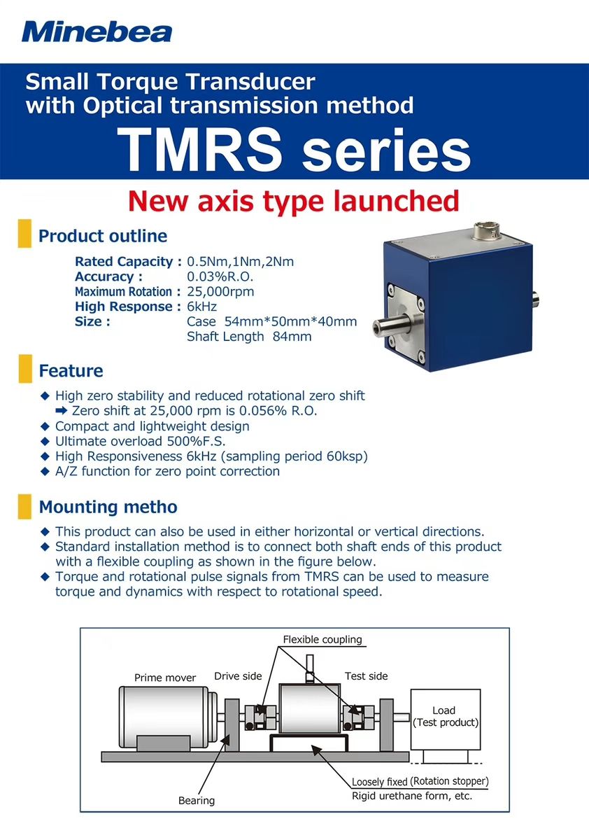 TMRS 是日本 MinebeaMitsumi 公司推出的一款低容量轴式扭矩传感器系列,