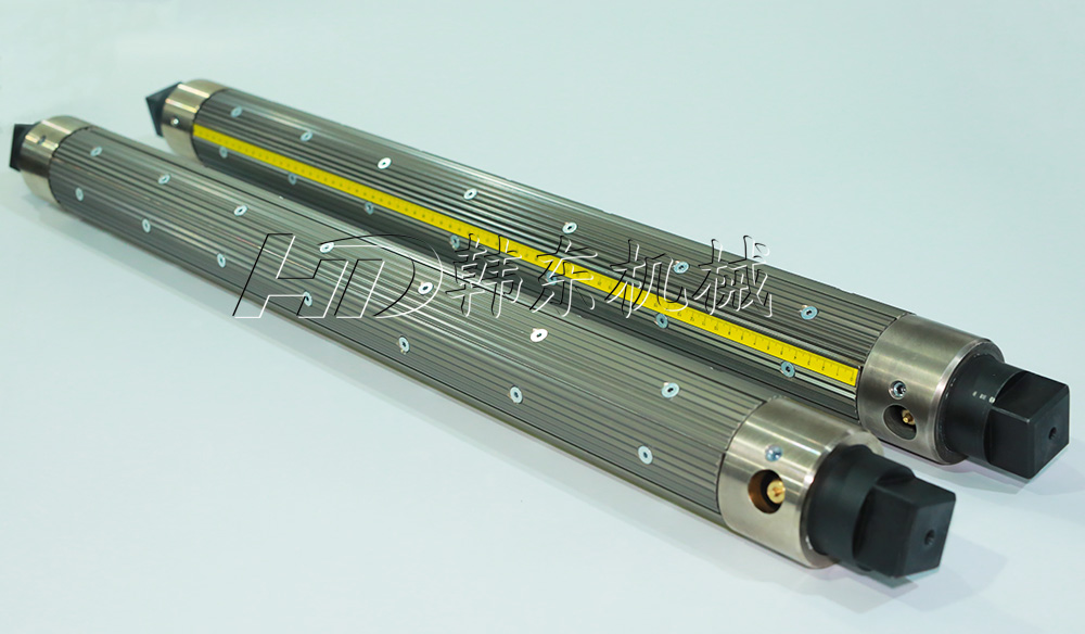 3、通键式气胀轴:通键式气胀轴为表面五爪键条,分为橡胶/铝条/PU等,适用生产各类纸芯管,运用于高转速,高载重,并能调整材料偏移,属于加强型气涨轴,主要以铜箔机,压纹机等高端素材,可依客户需求量制。