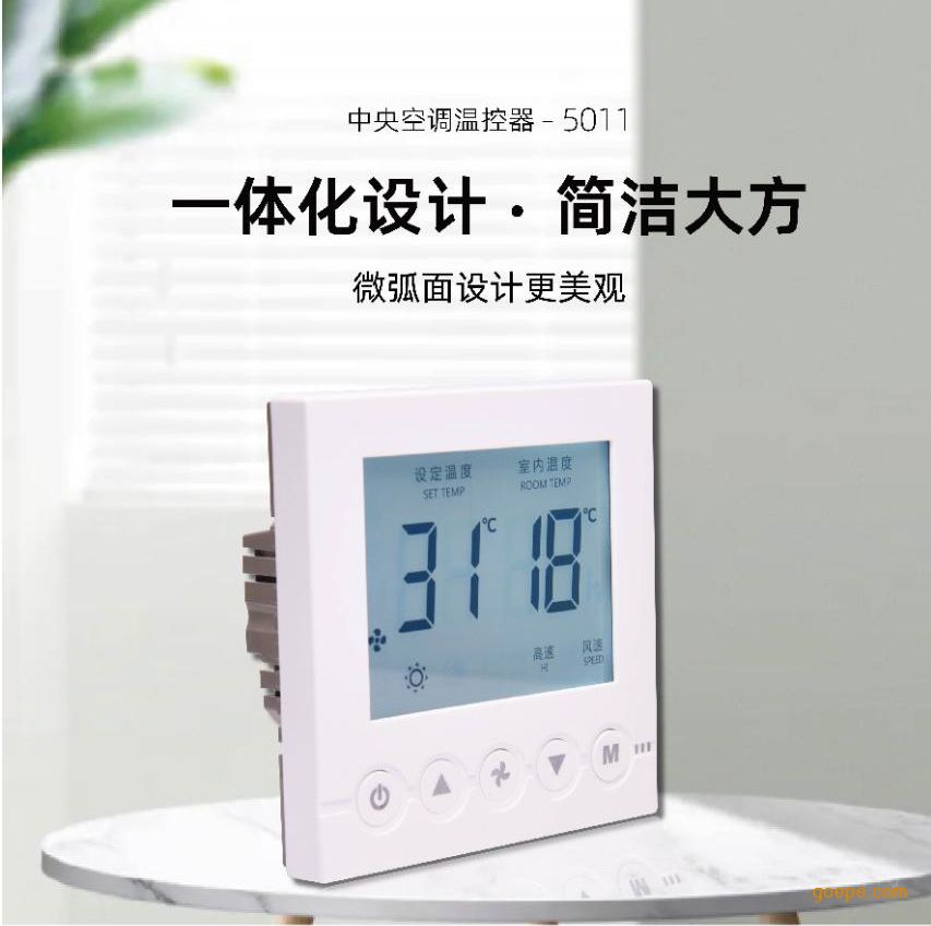 KT5011温控器是一款中央空调风机盘管温控器,可通过键盘操作实现定时开关机,模式切换、风速调整、 锁定、恒温温度设定等操作。