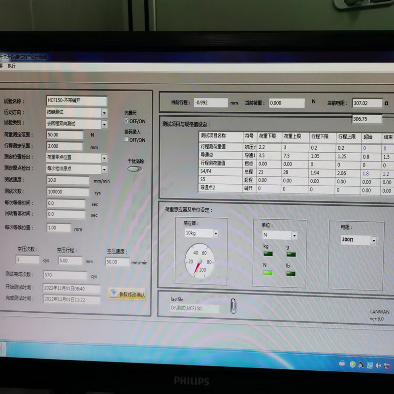 利用PC机中文视窗画面设定,操作简单方便,且所有资料皆可储存(试验条件、荷重曲线图、测试结果、检查报表…等等). 此设备所有数据均可以通过电脑设置,自动测试,自动出数据,无需人工调整试验机高度或者人工计算数据,均自动测试,结果自动保存以及可以自动导出。