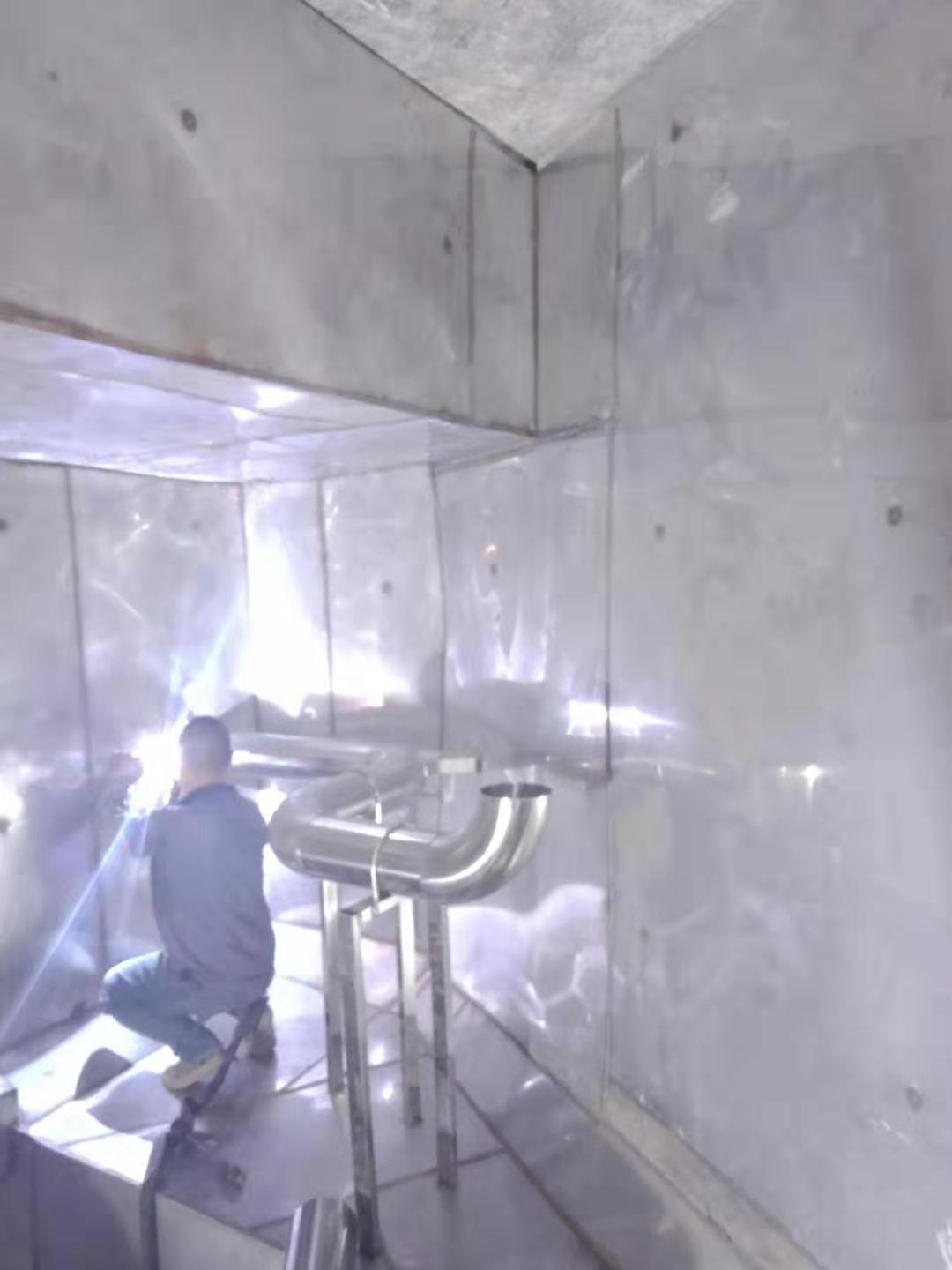 不锈钢内衬水箱此工艺适用于普通钢板水箱和混凝土水池的改造工程,此工艺是在水箱和蓄水池内壁内衬一层厚度1.2-3.0mm的不锈钢板。采用氩弧焊接整体成型技术,并且为了使内衬同原水池附着牢固,用膨胀螺栓将不锈钢板固定在池壁上。