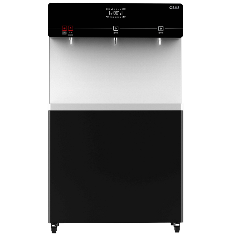 产品尺寸900*450*1530mm,出水量开水30L/H温开水100L/H,电压220V,功率3kw,可供应100人。清水源品牌一开二温节能式直饮机,水箱容量27L,该容量水箱可供应100人饮用,可选择配备3级普通过滤。 五级反渗透过滤功能,显示触屏功能配合远程开关及定时功能,使得用户使用感提升,性价比更高。具有100%煮开、高温杀菌系统,确保水质健康、检测无忧。定时开关机、隔夜水定时自动排空、物联网自动报修、水质实时监测、滤芯消耗更新显示、手机远程开关机等特点。零售价为12880元/台。