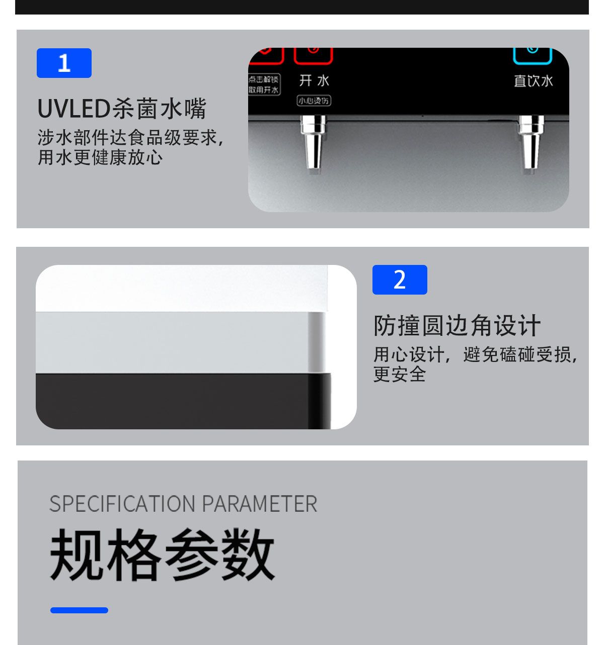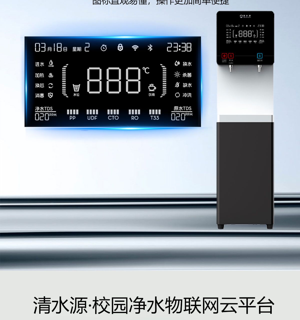 产品尺寸360*400*1370mm,出水量开水20L/H直饮水16L/H,电压220V,功率2kw,可供应20-50人。清水源品牌一开一直饮步进式直饮机,水箱容量10L,该容量水箱可供应50人饮用,可选择配备3级普通过滤。 五级反渗透过滤功能,显示触屏功能配合远程开关及定时功能,使得用户使用感提升,性价比更高。具有100%煮开、高温杀菌系统,确保水质健康、检测无忧。定时开关机、隔夜水定时自动排空、物联网自动报修、水质实时监测、滤芯消耗更新显示、手机远程开关机等特点。零售价为12890元/台。