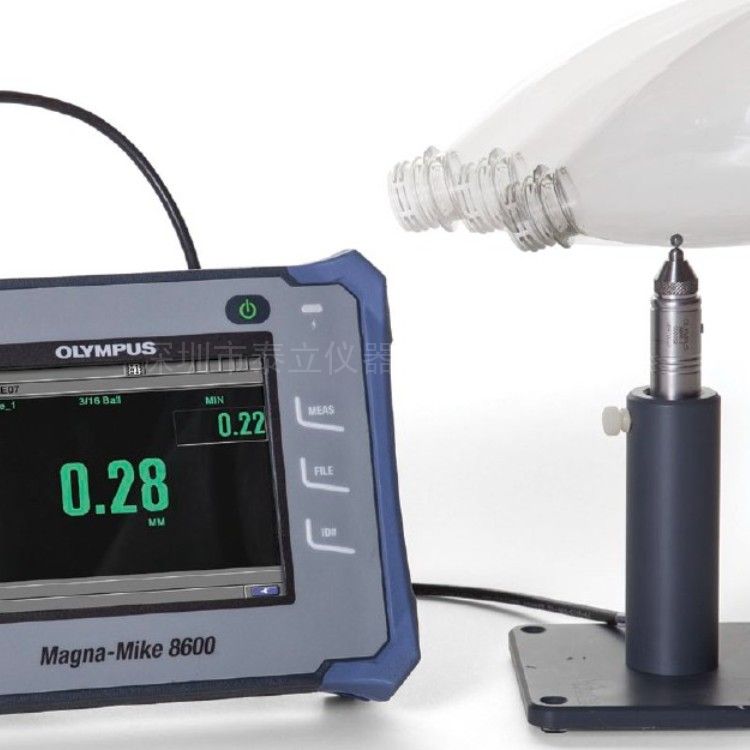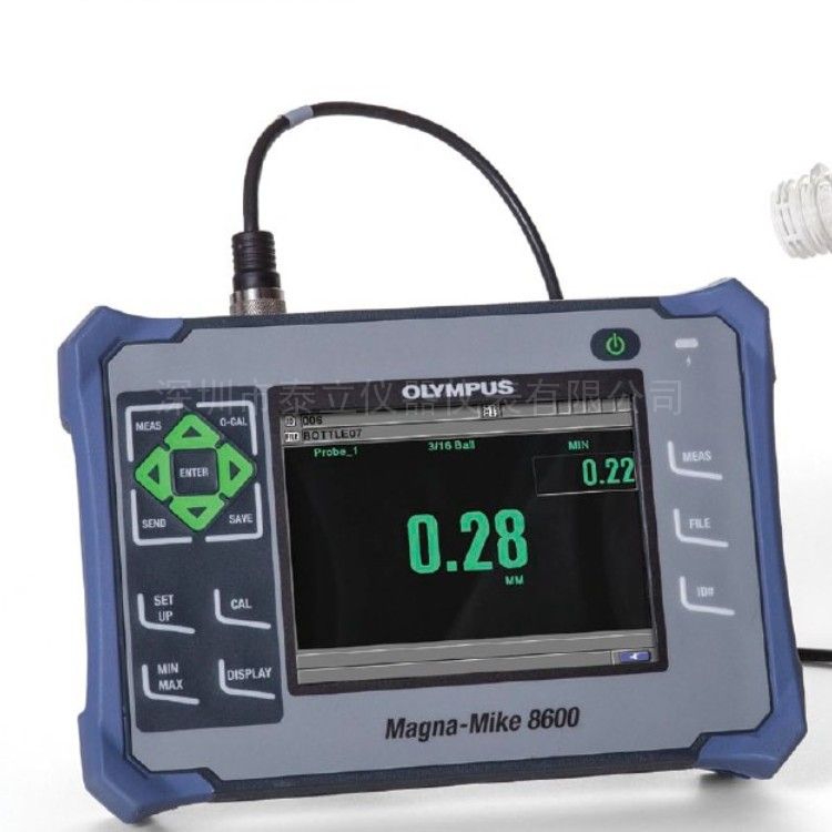 Magna-Mike8600 是一款便携式测厚仪,它利用简单的磁法对非铁性材料进行可靠的、重复性*的厚度测量。Magna-Mike 仪器的操作十分简单。测量时,在被测材料的一侧按住或移动磁探头,在材料的另一侧放上或在容器里放入一个小目标钢珠(或目标圆盘、目标钢线)。探头的霍尔效应传感器测量探头端部到目标钢珠的距离。这个测出的距离即刻被作为厚度读数以便于识读的数字形式显示在屏幕上。