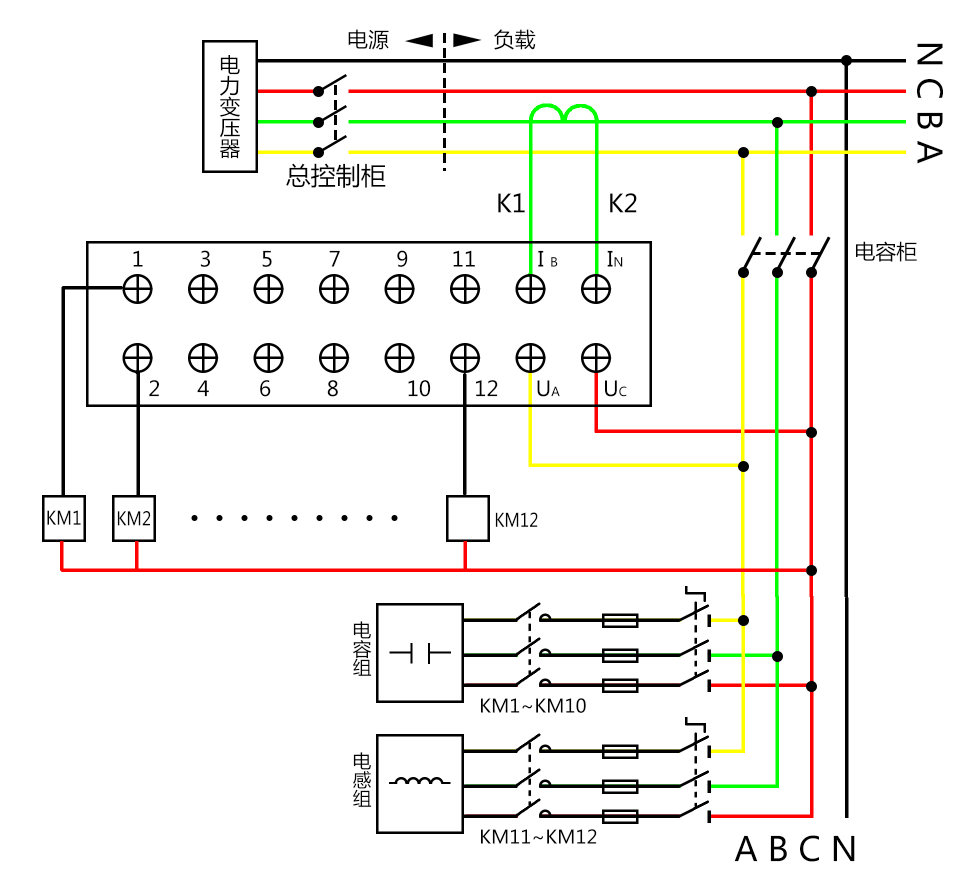 5. 能动态显示配电系统实时功率因数,电网的过补偿和欠补偿均能自动监测、处理。