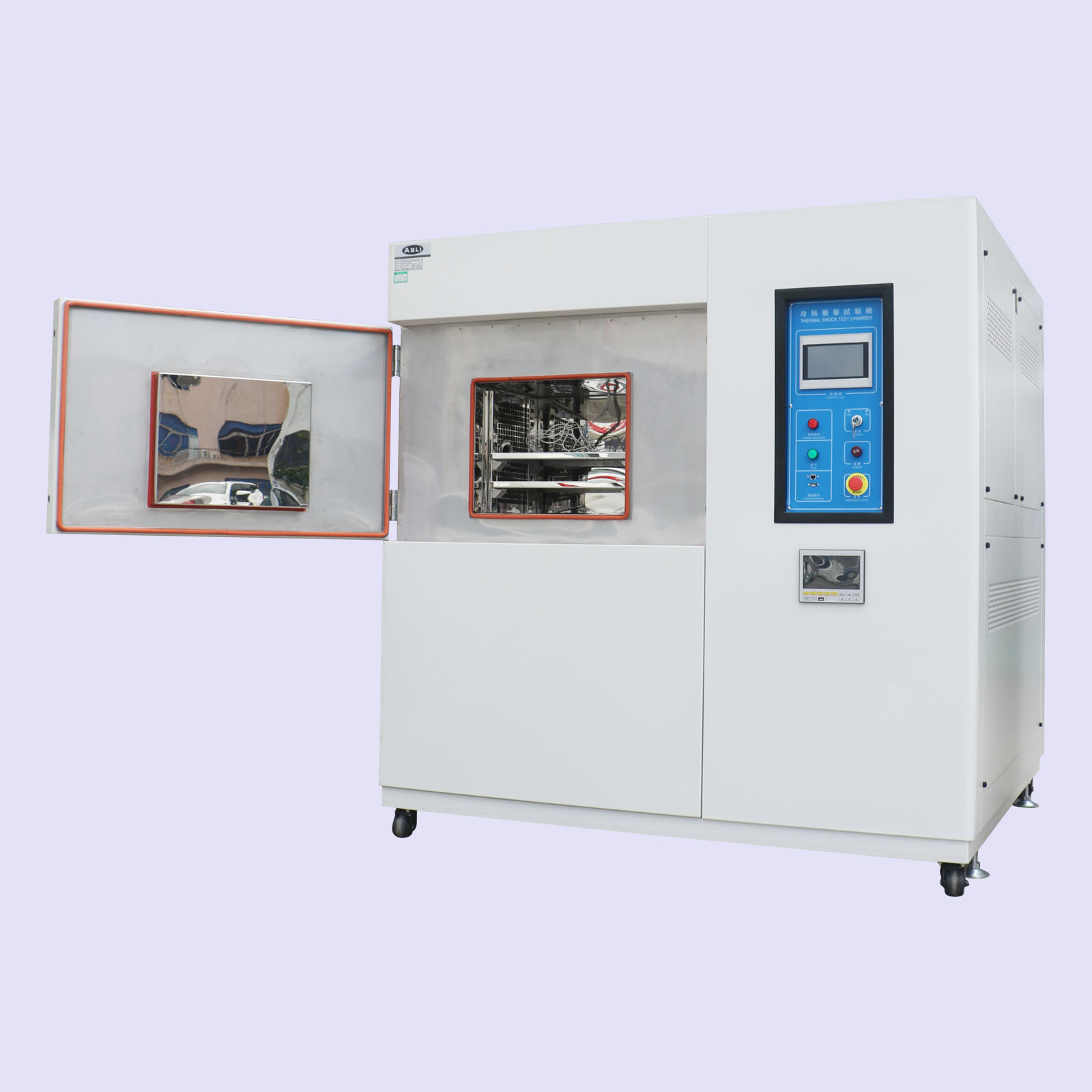 艾思荔生产的蓄温式冷热冲击试验箱控制为进口数显仪表,具有程序编写和控制\PID自动跟踪检索整定功能。箱体采用数控机床加工成型,造型美观大方,并采用无反作用把手,操作简便。箱体内胆采用进口不锈钢板和镜面板,箱体外壳采用A3钢板喷塑,增加了外观质感和洁净度。