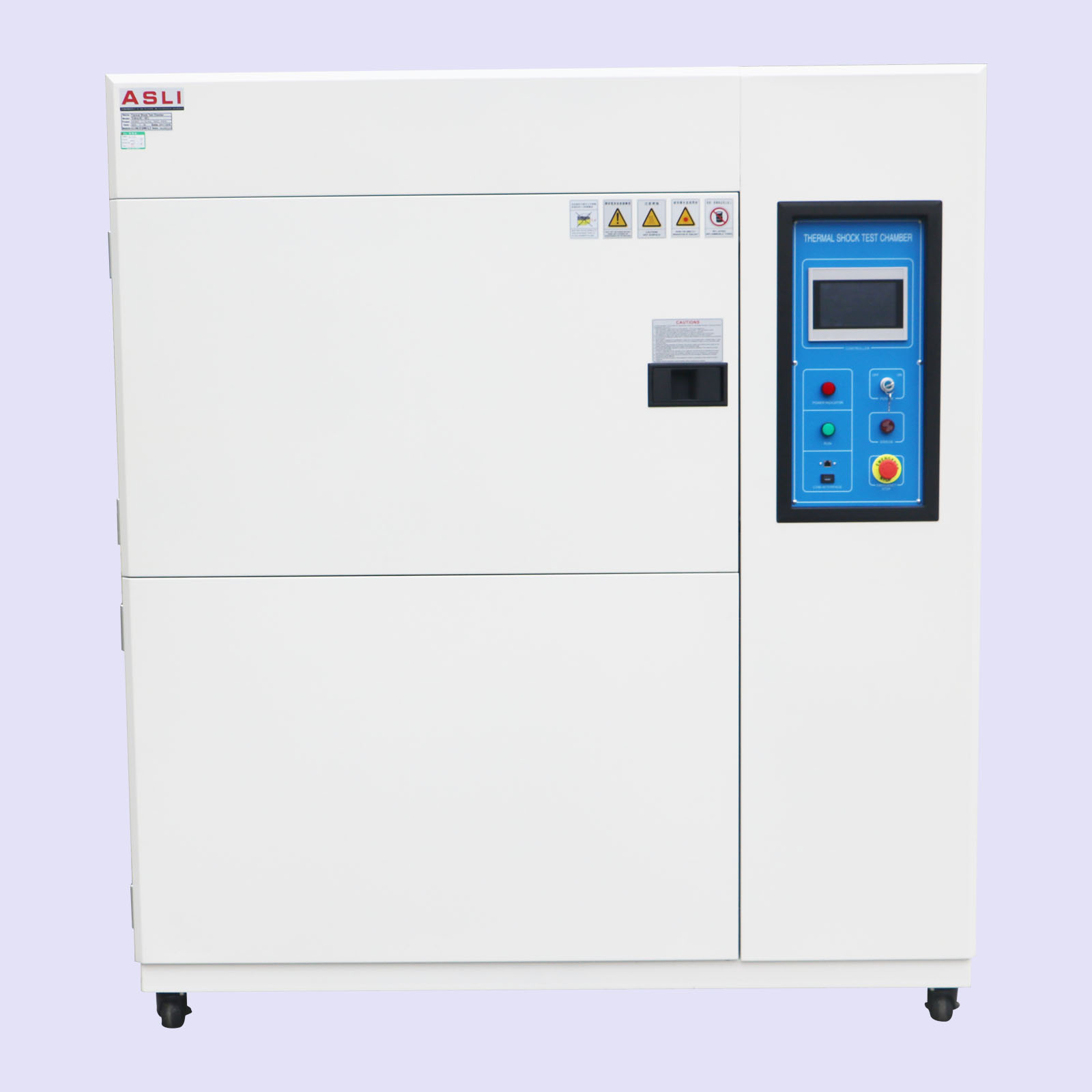 艾思荔生产的低温冷热温度冲击试验箱控制为进口数显仪表,具有程序编写和控制\PID自动跟踪检索整定功能。箱体采用数控机床加工成型,造型美观大方,并采用无反作用把手,操作简便。箱体内胆采用进口不锈钢板和镜面板,箱体外壳采用A3钢板喷塑,增加了外观质感和洁净度。