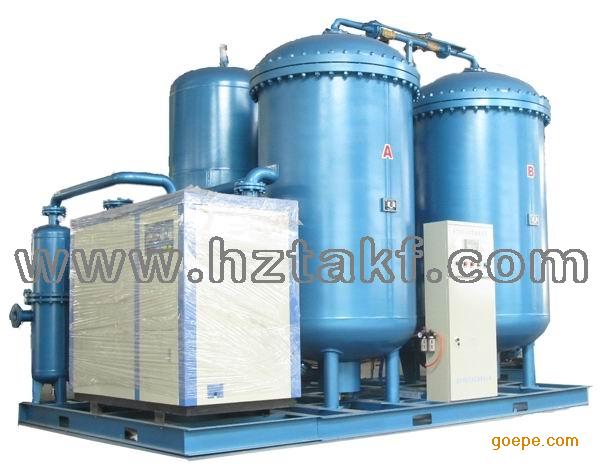 从空气缓冲罐出来的压缩空气首先经过高效除油器旋风过滤除去大部分油、水、尘埃后,进入冷冻式干燥机,通过换热降温使压缩空气的露点低于-20℃,除去大量的水分,再经精密过滤器进一步过滤,使含油量≤0.1ppm,含尘量≤0.1μm,***后经过催化净化器除去酸、碱性等有害气体及微油雾。