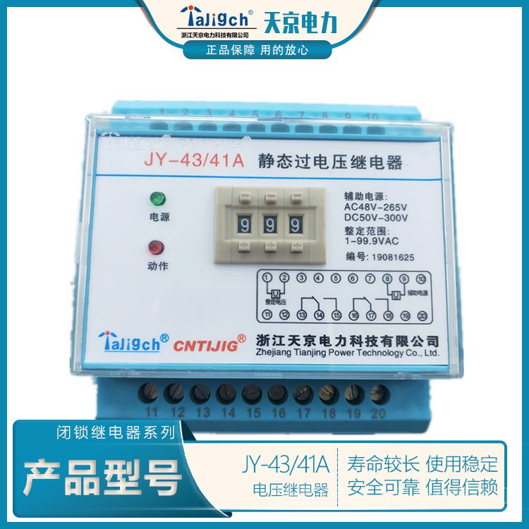 1、整定方便,采用三位拨盘开关整定电压值,直观方便,无须校验。整定范围:19V~130V或40V~260V。