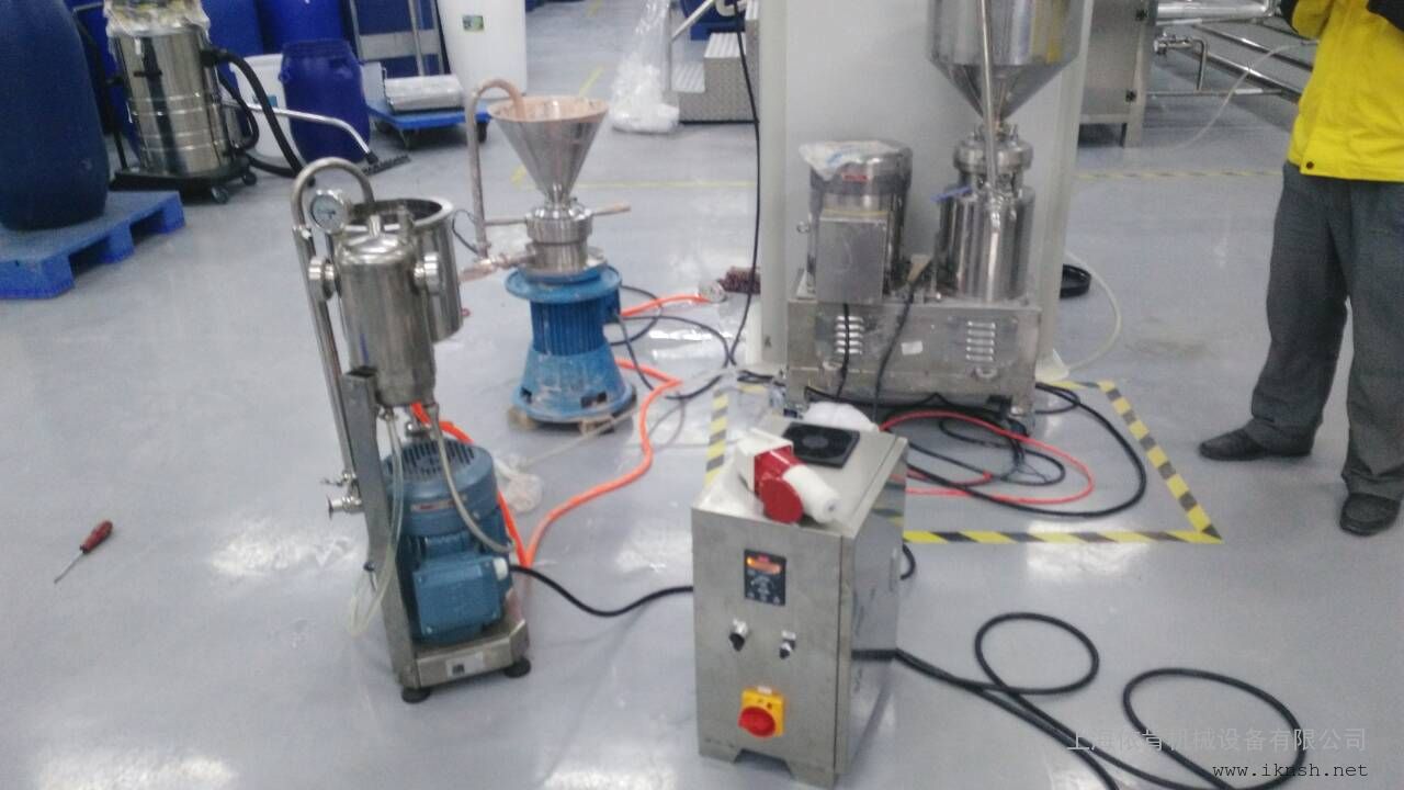 树脂湿法粉碎机,树脂高速湿法粉碎机,聚酰亚胺树脂高速湿法粉碎机 ,聚醚枫树脂高速湿法粉碎机,高分子湿法粉碎机是是湿磨机湿磨是干磨的一种安全而高效的替代方案,基于转子-定子原理。IKN湿磨机的输入剪切能大,可实现10 µm及以下粒度。IKN湿磨机能够处理宽粘度范围的产品。鉴于其处理能力,IKN湿磨机被用于诸多应用,如织物涂料、漆、染纸颜料和润滑脂湿磨。 实验室湿法粉碎机是由电动机通过皮带传动带动转齿(或称为转子)与相配的定齿(或称为定子)作相对的高速旋转,被加工物料通过本身的重量或外部压力(可由泵产生)加压产生向下的螺旋冲击力,透过胶体磨定、转齿之间的间隙(间隙可调)时受到强大的剪切力、摩擦力、高频振动等物理作用,使物料被有效地乳化、分散和粉碎,达到物料超细粉碎及乳化的效果。