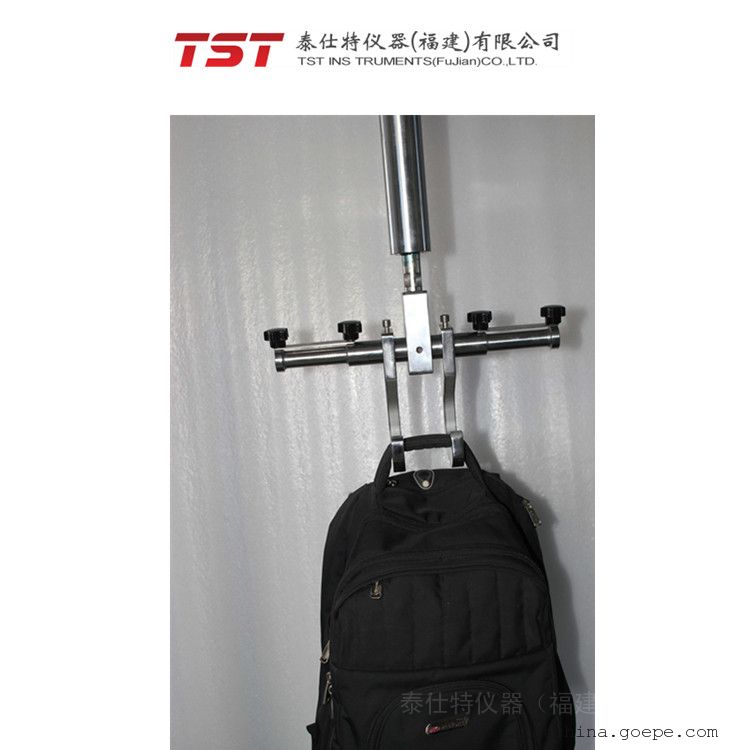 箱包振荡冲击试验机用于测试旅行箱提把、车缝线及整体结构的耐振荡冲击试验。方法是在物件上装载规定的荷重,以每分钟30次的速度冲击及4英寸的行程对试件做2500次试验,试验结果可作为品质改进的参考。