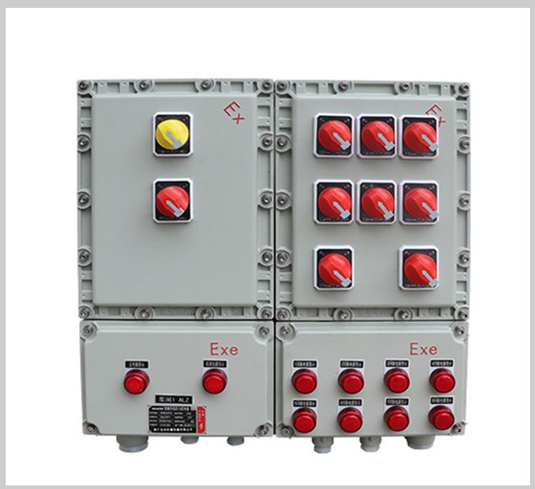 BXM(D)-4K 防爆配电箱一进四出在咨询时,须注明配电箱的回路数,各回路相应的电流以及断路器的极数,若需带漏电功能,则还需注明若需带总开关则请注明总开关的电流及极数,并注明进出线方向,进出线规格及对应的数量。 动力配电箱开关布局及安装尺寸部分可参照后面的外形及安装举例动力照明混装时,