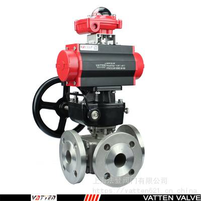 工业三通排水球阀 气动带手动三通换向阀 上海法登/VATTEN