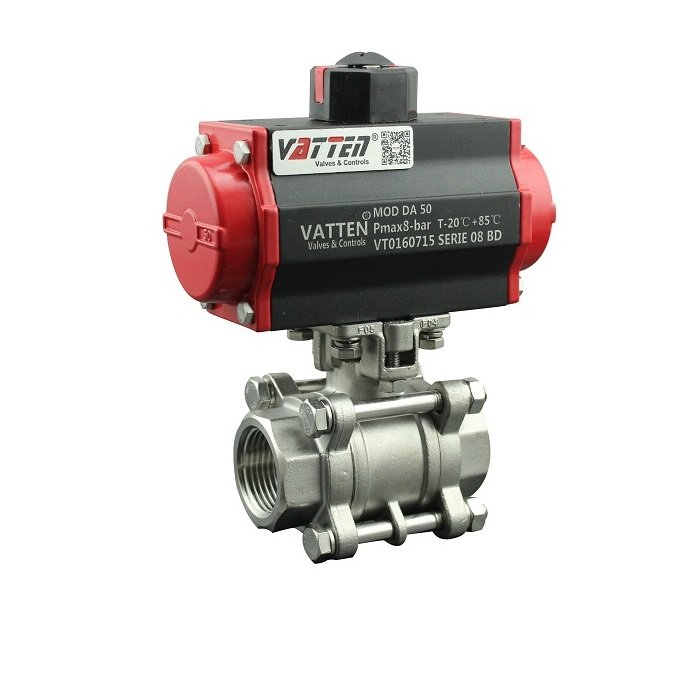 气动三片式NPT螺纹球阀 高平台气动开关阀 德国VATTEN