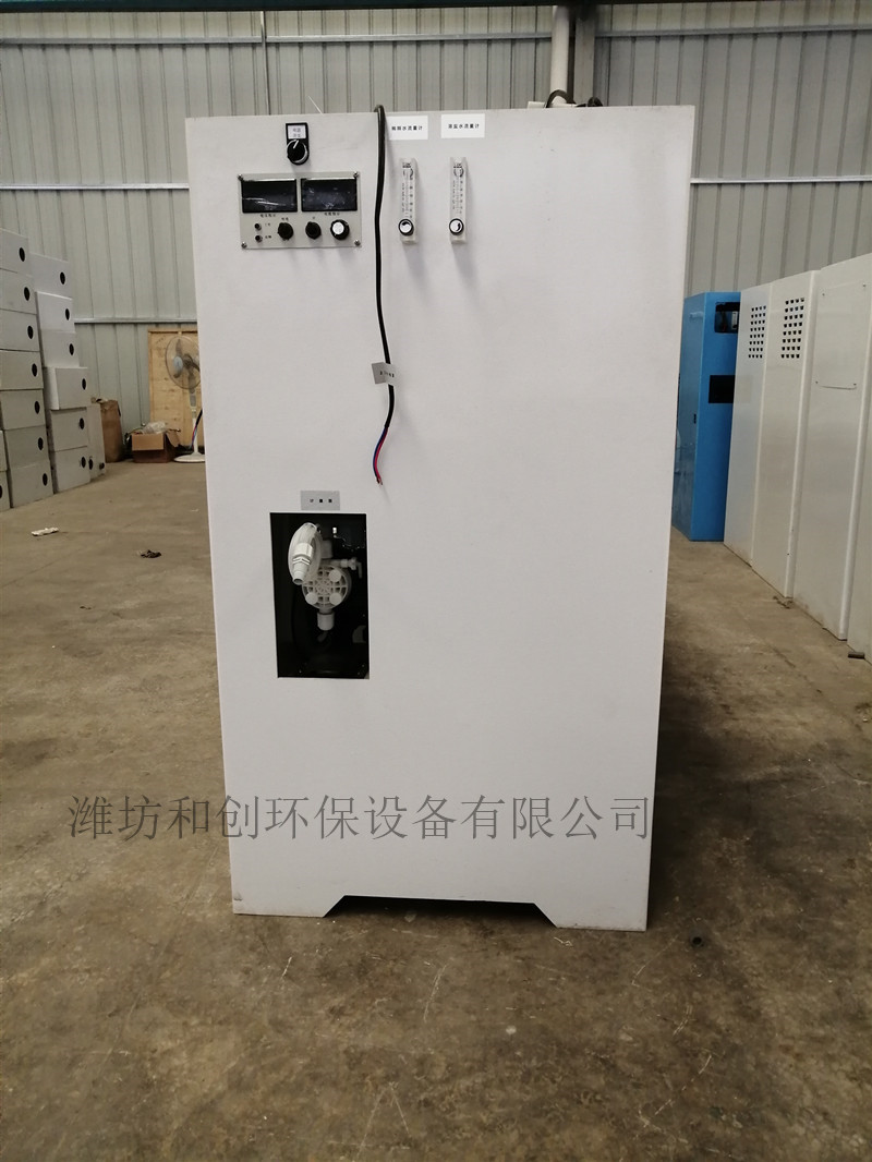 电解型现场制备次氯酸钠发生器是*安全、方便、运行节能的消毒设备,但是也要注意卤化物的含量控制。当原水的腐植酸、有机物等含量特别高时,要慎重考虑使用次氯酸钠消毒法,因为次氯酸根会与有机物反应产生卤化物,如果水厂使用的是老水库水或者水库有机物含量特别高,应该考虑对原水进行预处理或者多种消毒方式复合使用,只用单一一种消毒方式可能很难达到有效和安全的消毒效果。