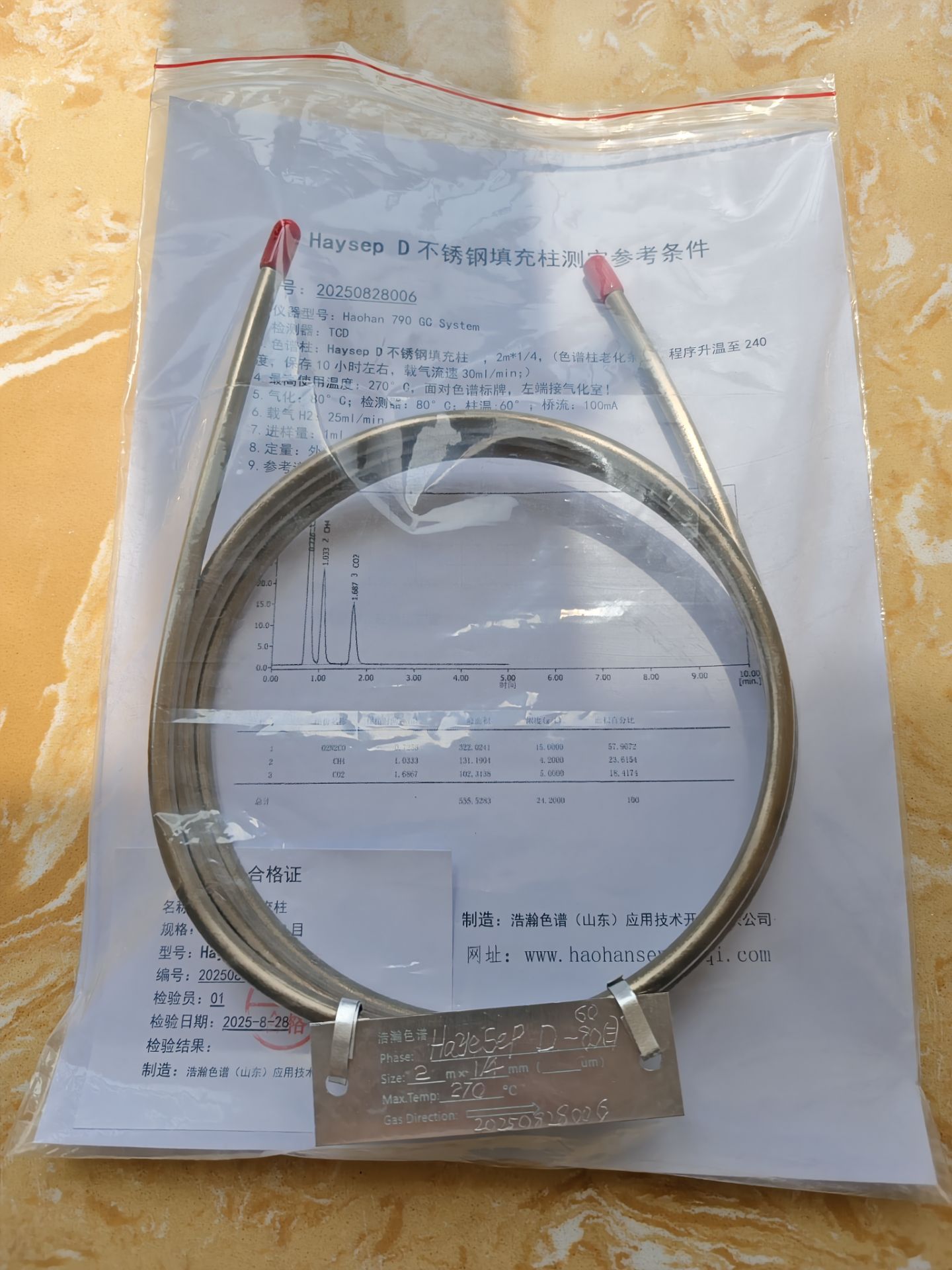 Haohan Chromatography (Shandong) Application Technology Development Co., Ltd. has achieved good separation effects in natural gas, coal chemical industry, and environmental VOCs using the "Haysep D packed chromatography column application Shimadzu 2014". It has also achieved good results in Agilent, Shimadzu, Thermo Fisher Scientific, and PE.