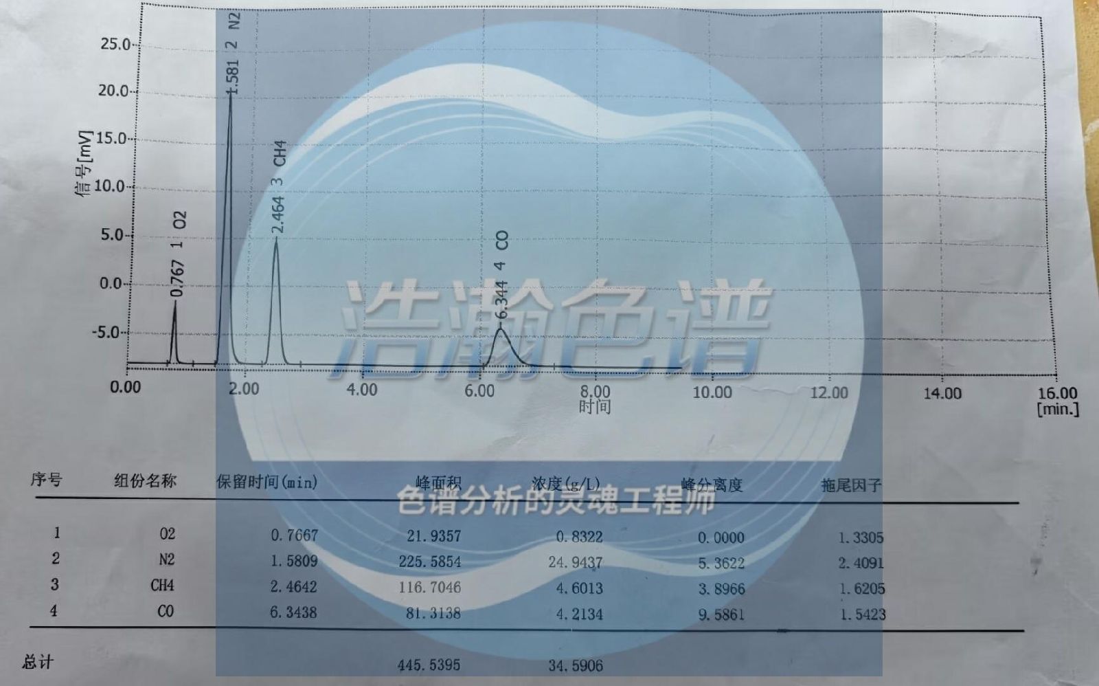 For example, a mixture of O ₂, N ₂, CH ₄, and CO can be well separated on a 5 angstrom molecular sieve column. Among them, CO has a strong interaction with molecular sieves due to its dipole moment, resulting in a later peak appearance.