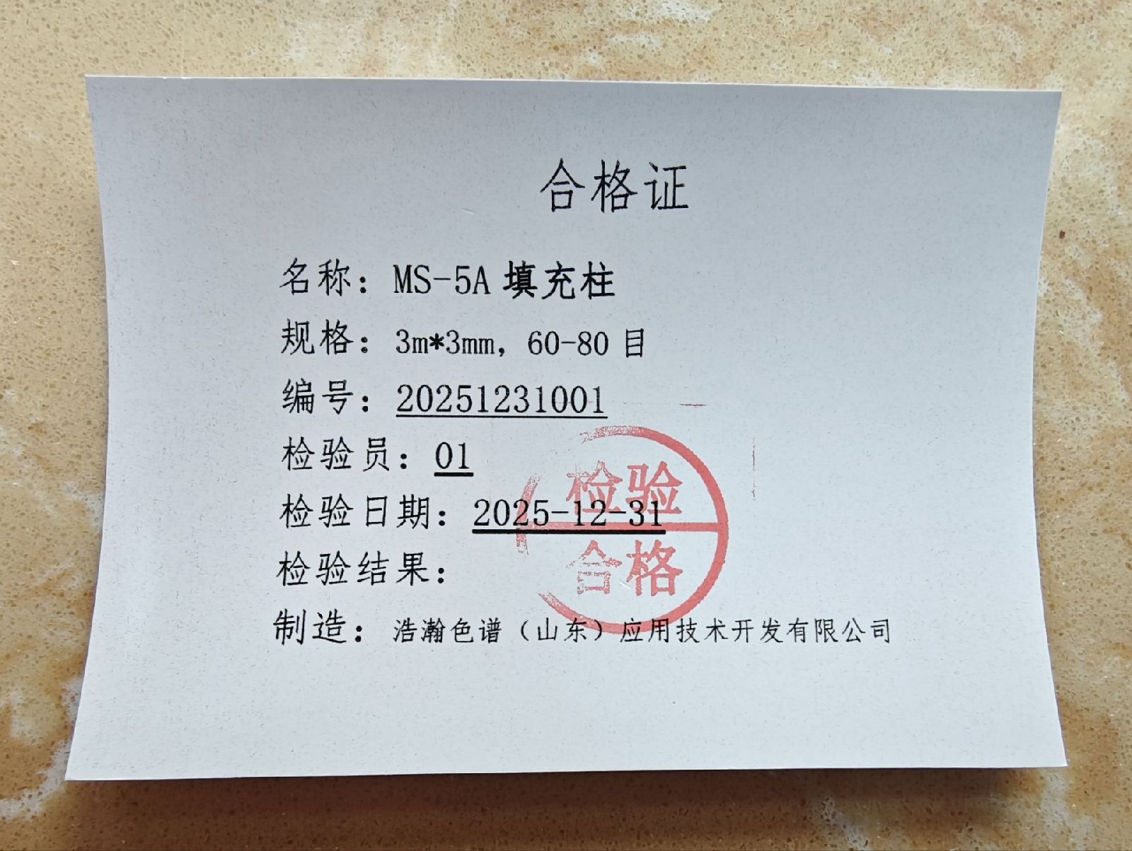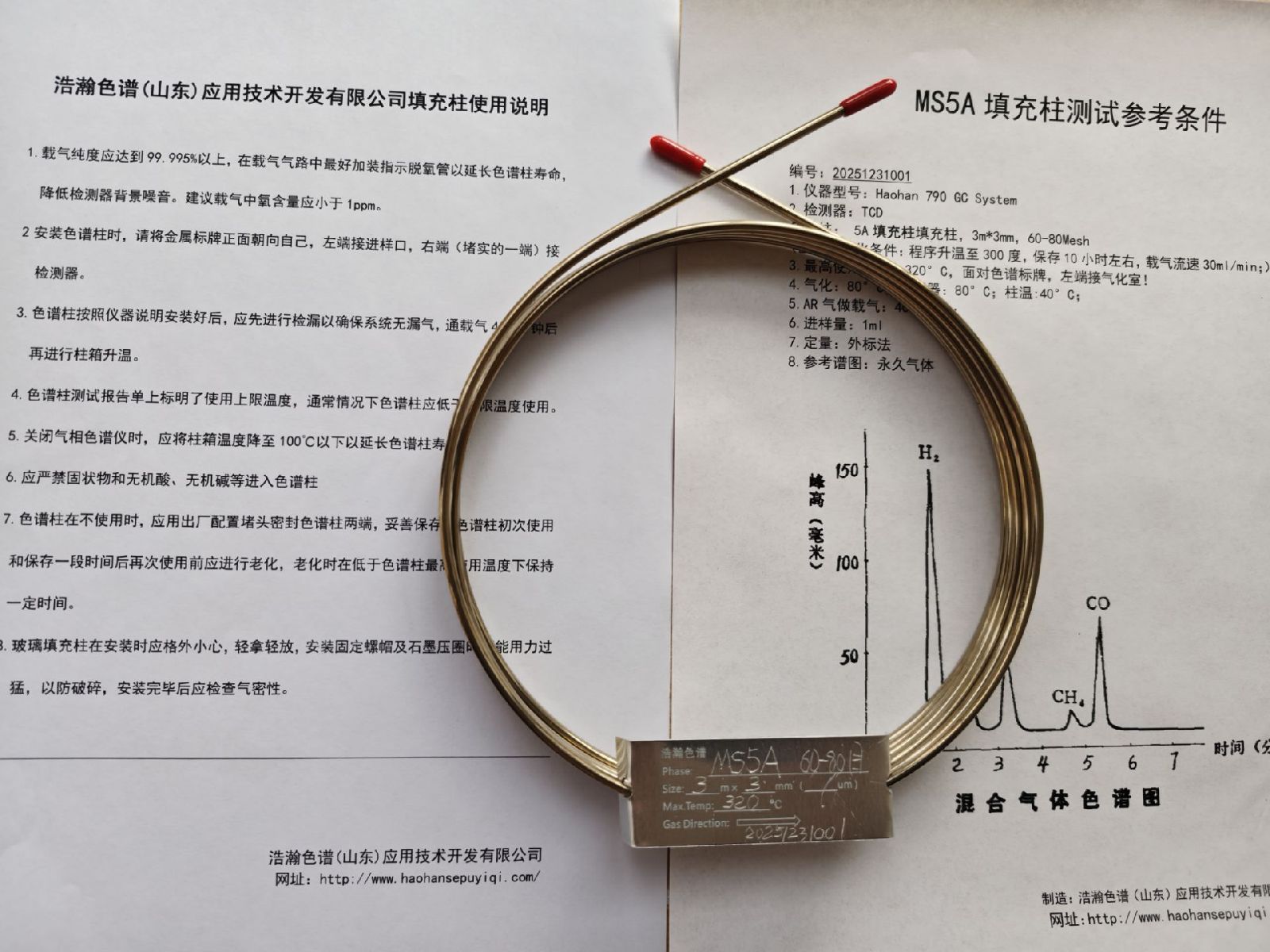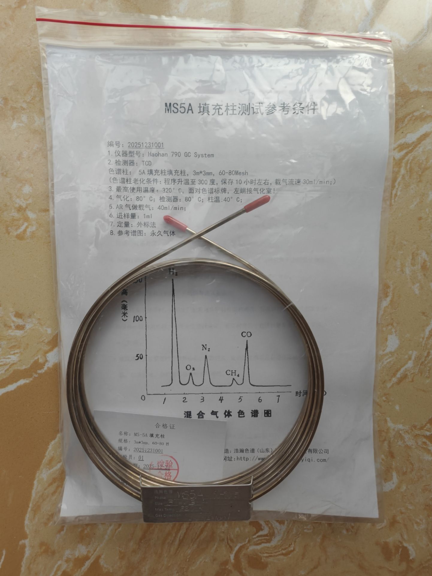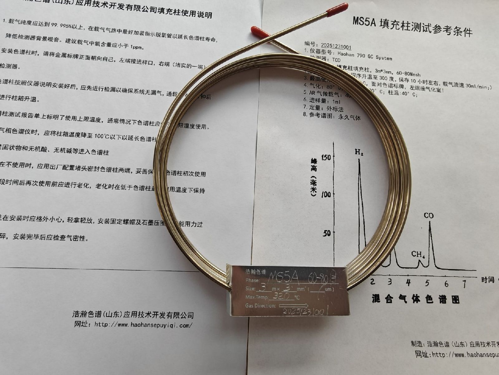 Haohan Chromatography (Shandong) Application Technology Development Co., Ltd. has developed and produced the "5-Å Molecular Sieve Filled Chromatography Column Application Shimadzu GC2014", which has high column efficiency for separating hydrogen, oxygen, nitrogen, carbon monoxide, and methane, with good separation performance. It has been installed and used on Agilent, Shimadzu, Thermo Fisher, Varian, Bruker, and PE with good results.