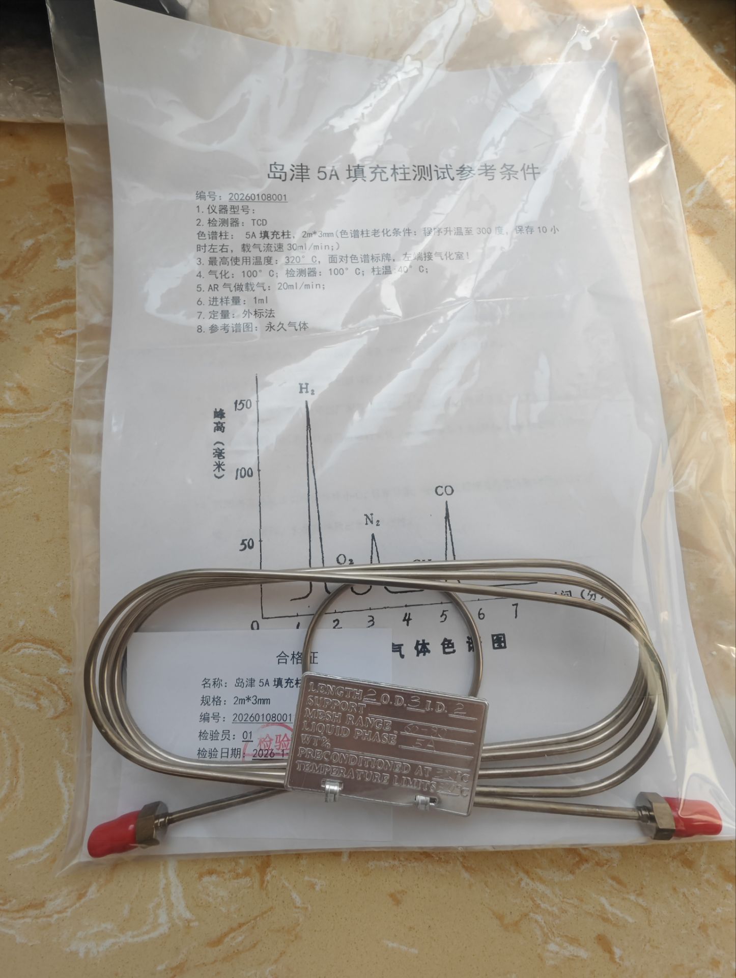 浩瀚色谱(山东)应用技术开发有限公司,研制的《岛津定制的五A填充色谱柱 》,柱效高,分离好,安装在岛津GC14C,GC-7A,GC-2010,GC-2014,GC-2030,GC-2018测定氢,氧,氮,一氧化碳,甲烷,效率高,结果满意。