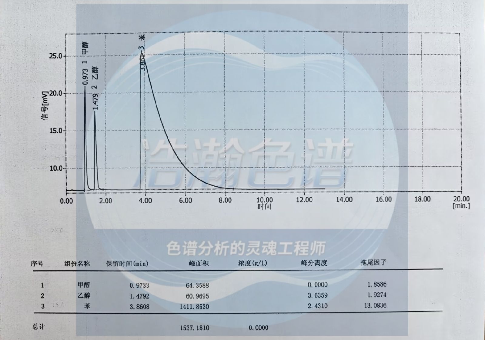 特点:大量空气不干扰甲醇/乙醇的测定;峰形对称,尖锐