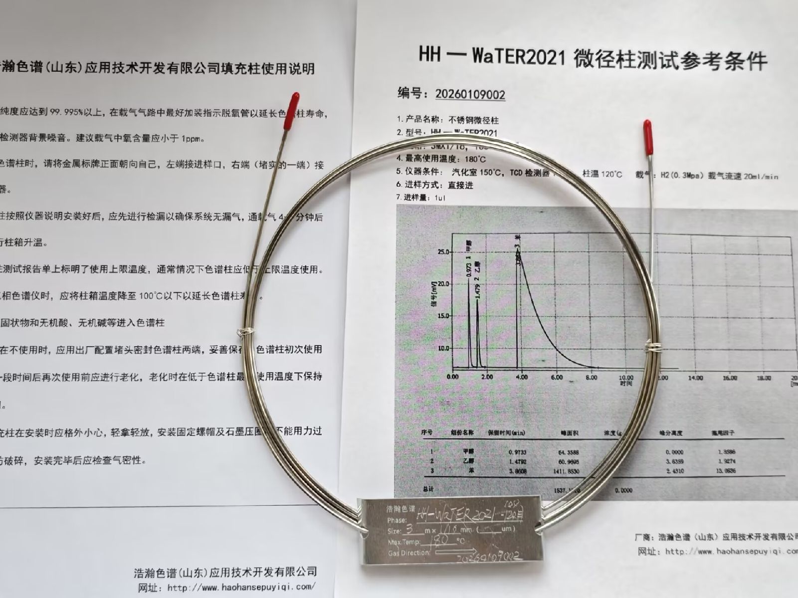 浩瀚色谱(山东)应用技术开发有限公司,研制生产的《废气中甲醇测定微径填充色谱柱应用岛津》,柱效高,分离好,,在安捷伦,岛津,赛默飞,瓦里安,