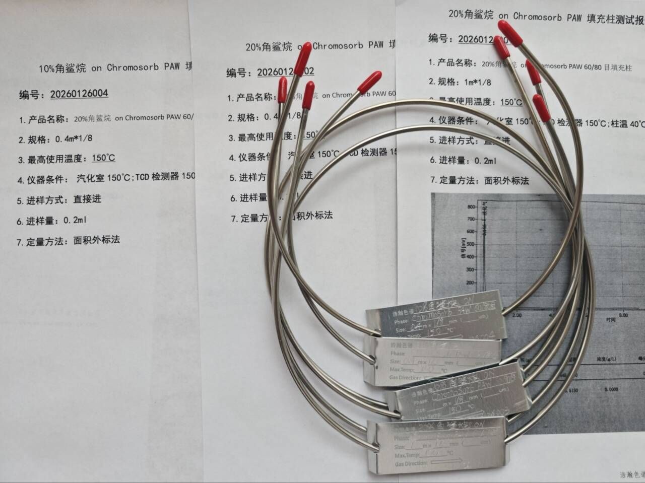 浩瀚色谱(山东)应用技术开发有限公司,研制的《角鲨烷色谱柱应用安捷伦7890 》按照沸点顺序分离的非极性混合物分析中仍有应用,例如部分炼厂气、轻质烃类(C1-C5) 的分析。