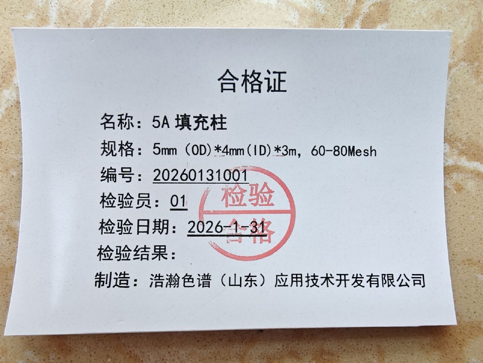名称:5埃填充柱