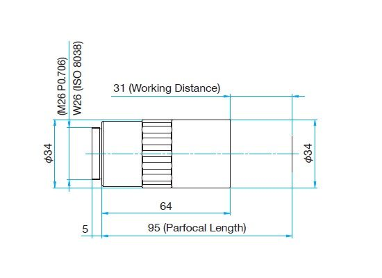 产品标称倍率基于搭配f=200mm成像镜得出。使用其他厂商成像镜时,请先确认其焦距,并依据公式实际倍率=成像镜焦距/物镜焦距进行计算。