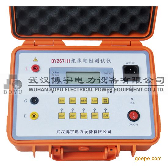 本仪器采用高压逆变电路将DC供电逆变为额定高压输出1000V、2500V、5000V、10000V施加到被测试品两端,采用了先进电压、电流采样电路,将采样被测试品两端的电压和流经被测试品体内的电流量实行除运算,得到数字量结果输出到高精度A/D器,将A/D转换结果输出MCU电路处理。并由LCD数显示屏直接读取电阻值,该A/D转换器在启动高压测试后的第15s、1min、10min时自动进行转换,并将数据存入数据存储器;存储器内的数据可自动或手动调出读取,也能进行R1min/R15s、R10min/R1min运算,并读出数值。