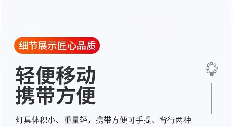 轻便耐用:灯具体积小、重量轻,支持手提、背行等多种携带方式,部分型号可安装铁轨轮,方便在铁路等特殊环境移动。FW6116工作灯