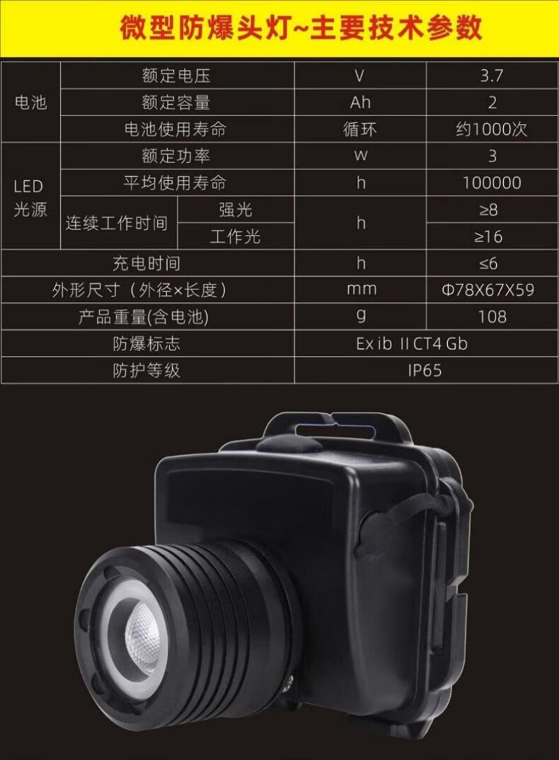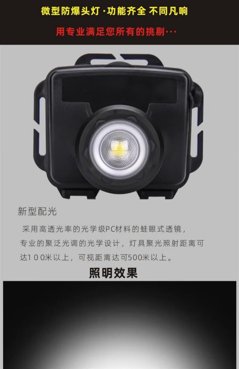 :该头灯具备本质安全型防爆等级(如Ex ib IIC T4 Gb),适用于易燃易爆环境(如I区、II区),并采用防静电材料,确保在危险场所安全使用。