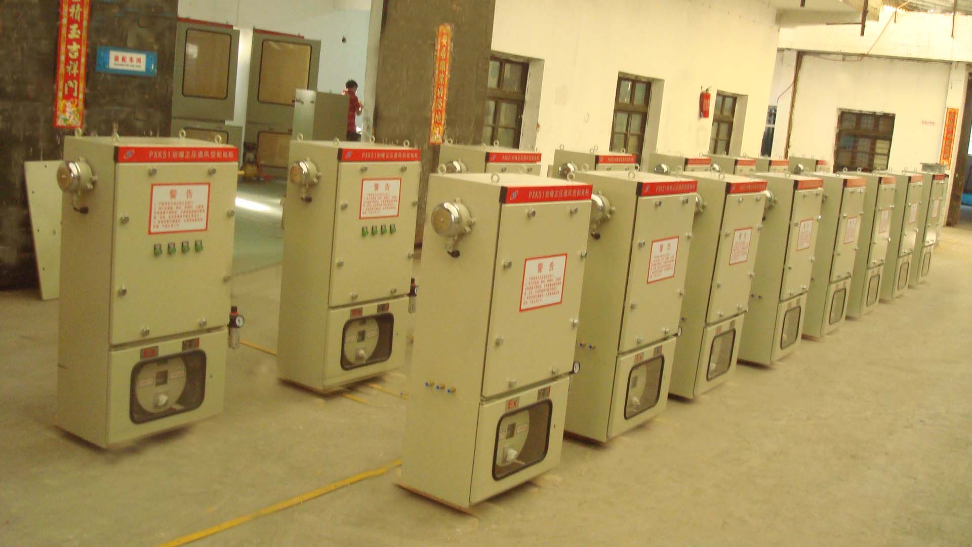 本公司产品由柜体、自控系统、布气系统、报警系统、配电系统组成。柜体为柜式上下结构或左右结构,由正压腔和副腔组成,副腔内装自控系统、报警系统及用户的进出电缆,正压腔内装部分自控系统的防爆元件及用户的配电系统元件。