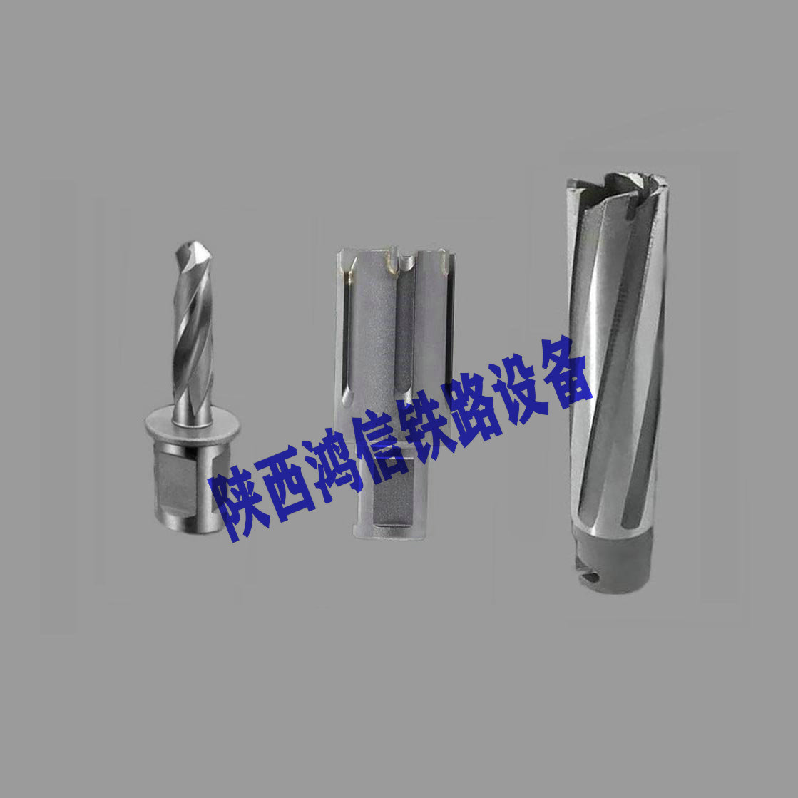 陕西鸿信铁路设备 供应磁力钻、钢轨钻头、轨道道钉尼龙套取心钻头。钢轨钻头适用铁路轨道交通为铁路抢修和正常维护施工而设计制造的切削刀具,与钢轨钻孔机等机械设备配套使用共同作业。特点:采用多个切削刃,耐磨性能好、钻孔效率比普通麻花钻成倍提高。钢轨麻花空心钻头参数:材质:硬质合金、高速钢;刀柄类型:直角柄;冷却型式:内冷却;柄部直径19mm;有效长度25mm, 切削直径:9.8mm、13.5mm、31mm; 总长62mm、64mm;;一支钻头一次钻孔40-50个孔。