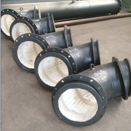 粘贴陶瓷片耐磨弯头是我公司采用特制的耐温强力胶将特种刚玉耐磨陶瓷片粘贴在钢管弯头内部,