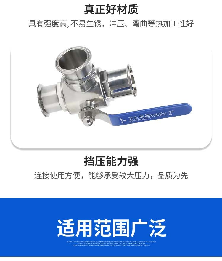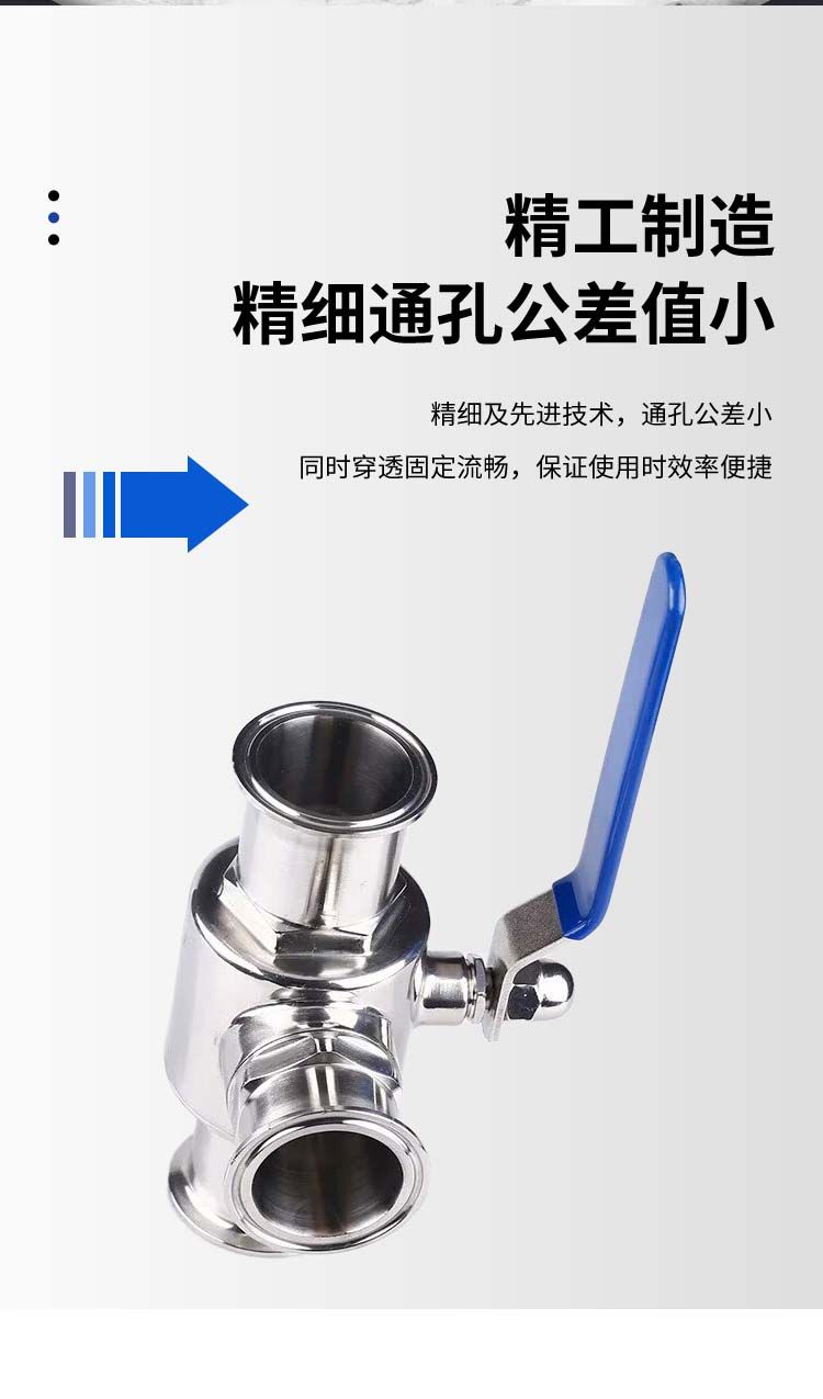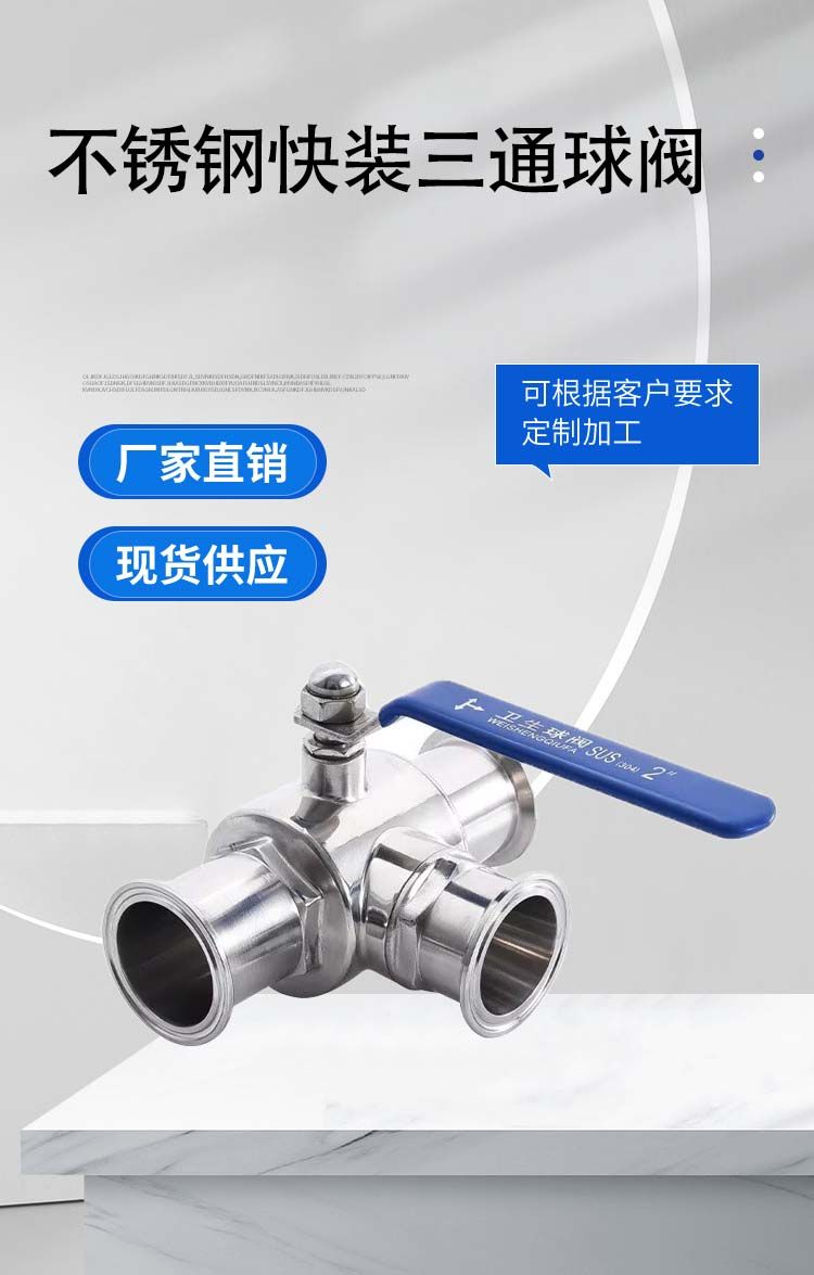 不锈钢快装三通球阀是一种集成卫生级快装连接与三通流道控制功能的旋转式阀门,核心用于管路系统中介质的流向切换、分流(一进两出)或合流(两进一出)控制,凭借快速拆装、密封可靠、结构紧凑的优势,广泛应用于食品、制药、乳品、饮料、纯水处理等卫生级流体输送场景。
