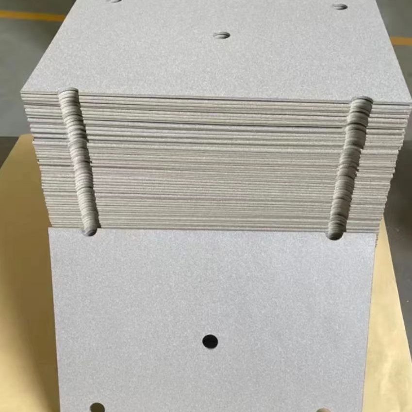 多孔钛板是以工业高纯钛粉(99.4%)为原料,经过粉末分级、筛选,轧制成型、烧结、机械焊接加工等工艺过程制成的一种新型高效多孔微孔金属过滤材料,因其孔隙和过滤精度可以在一定的范围内进行调整,被广泛应用于医药工业、水处理工业、食品工业、生物工程、化学工业、石油化工、冶金工业及气体净化领域,是一种具有广泛发展前景的新型金属过滤材料。
