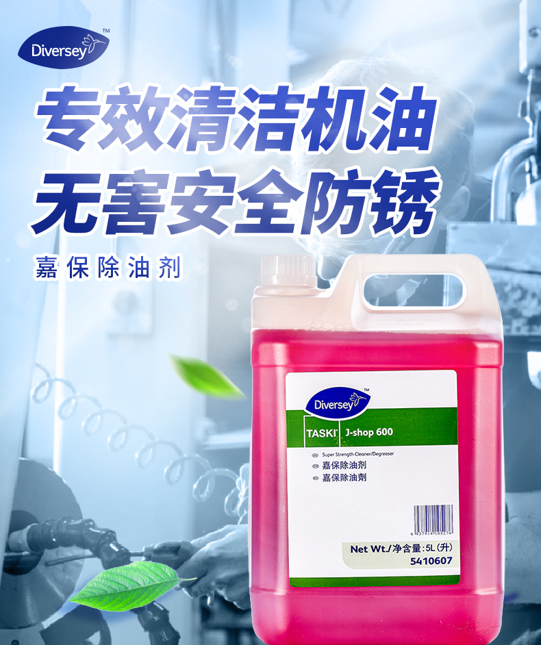【产品特点】:嘉保除油剂专门用于去除工厂内的顽固油渍,并含有防锈剂成份,可延缓机器设备的锈蚀。