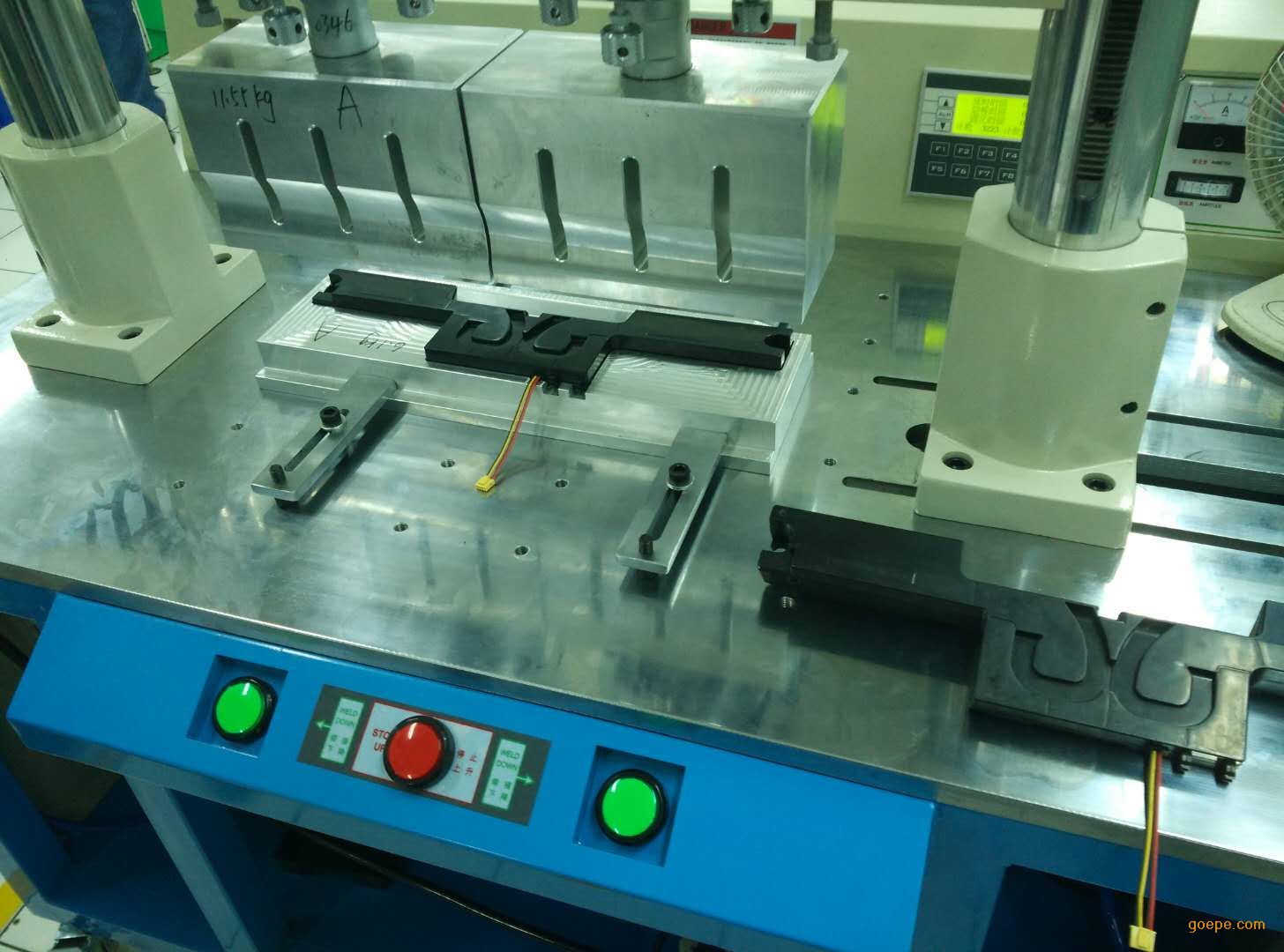 超声波双头塑料焊接机工作原理双头型超声波塑料焊接机一般是针对长形、弯形或其它复杂大工件塑料焊件设计的,把两台单头超声波塑料焊接机组合起来,每一台都可以单独操作和设定参数,以更加符合焊件的特点。具体焊接原理是:利用超声波换能器把高频电能转化为机械振动能,再通过超声波焊接模具传递到焊件接触面。机械振动就会产生高温,当到达焊件熔点时,塑料件就会熔化。超声波焊头再施加一定的压力,当机械振动停止后,塑料件就迅速冷却凝固,就会形成超声波焊头与底模所设计特定形状。并且双头超声波焊接机会达到完美焊接效果,焊接强度跟原材料一样。双头超声波焊接机:在汽车业的应用:制造车身塑料零件,汽车车门、汽车汽车仪表、车灯车镜、遮阳板、内饰件、滤清器,反光材料、反光道钉、保险杠、拉索、摩托车用塑料滤清器、散热器、制动液罐、油杯、水箱、油箱、风管、尾气净化器、托盘滤板、自行车零件、自行车尾灯、电动自行车零件等。
