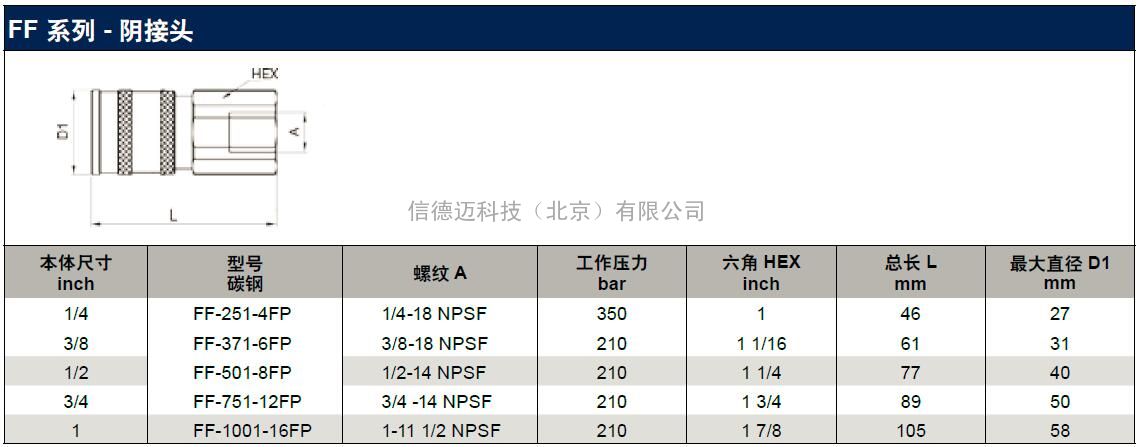 Parker快速接头,Parker FEM SERIES无溢流型快速接头,派克快速接头的设计ISO 16028标准的设计及压力要求。FEM标准件设计还可方便于选择各种阳接头,派克FEM接头设计用于建筑,公用设施及农业设备。如所有派克平齐端面设计一样,这种无溢流型快速接头的特征在于它削除了连接或断开液压附件时出现的液压泄漏和夹气。FEM系列可理想地用于许多其他应用,这类应用的特征是液压泄漏为一关注问题而且与其他制造厂家产品的普遍互换比较重要。阳接头:碳钢;表面处理:表面镀白锌;阀:平齐端面阀机构;密封件:抗爆裂丁晴橡胶