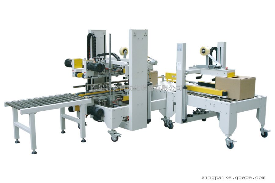 本四角边胶带封箱机采用星派克***新的外观设计,使得此套封箱机既美观又实用;选用进口零配件,配合十多年的封箱机研发经验,使其性能相当稳定。
