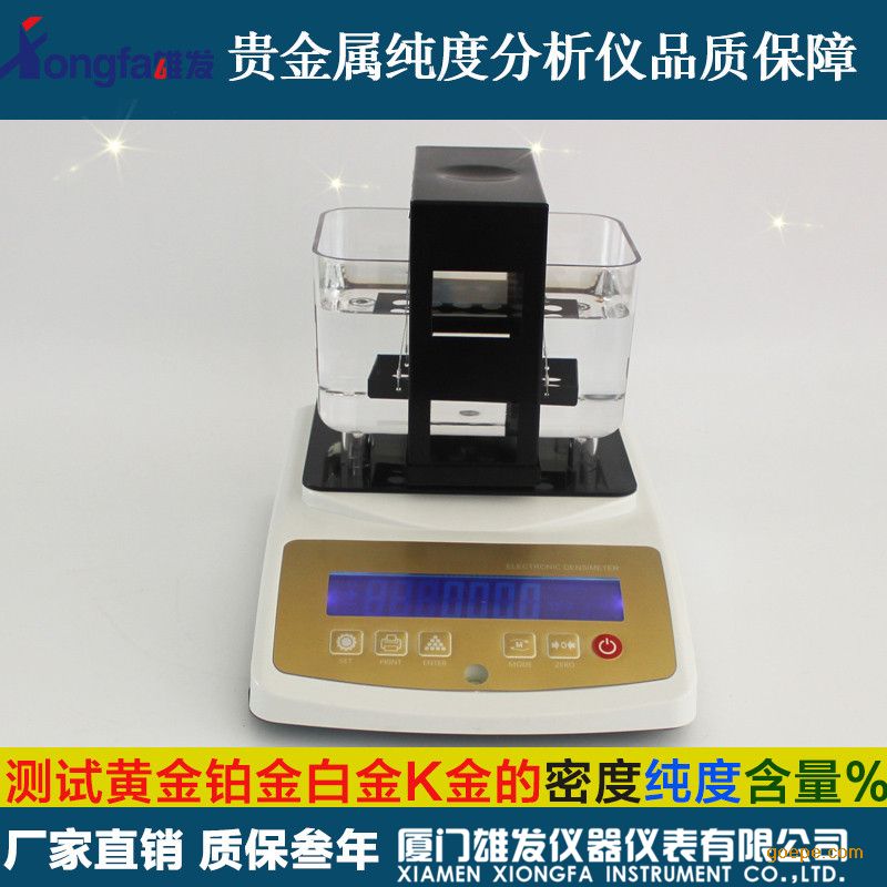 XF-120K黄金纯度测试仪是不损坏测量样品,可快速显示纯度、K值、密度值。具有测量精准、操作简单、快速、性能可靠、经济实惠等特点,根据阿基米得原理浮力法,准确、快速的读取黄金(k数)、密度和纯度%。无论任何未知金属物质,操作员均无需选择测试模版,软件智能匹配*佳测算方式,快速、精确、无损的对未知金属进行测试。XF-120K黄金纯度测试仪广泛应用于典当行、贵金属回收、珠宝银楼、珠宝业,银行,当铺业,黄金及贵金属研究实验室等行业。符合国家GB/T1423贵金属纯度测定方法规范.无论您是购买黄金等贵金属,还是出售或生产珠宝,或是制造金属,抑或是回收废旧金属,您都需要掌握一种可以极为精确地判断百分比纯度,以及贵金属与非贵金属含量的快速方法,在*时间,以有效地控制产品质量、制定合理的价格。