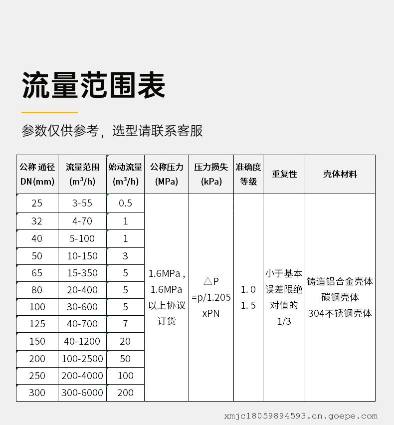 · 高精确度,一般可达±1.5%R、±1.0%R。