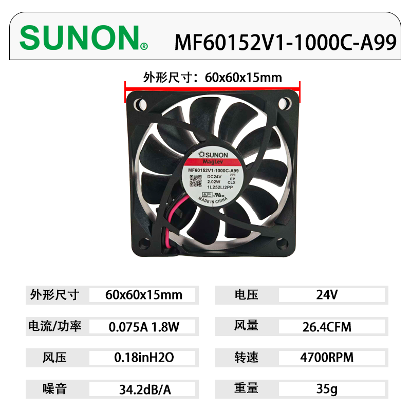 SUNON建准原装 MF60152V1-1000C-A99 6015 24V磁悬浮静音散热风机