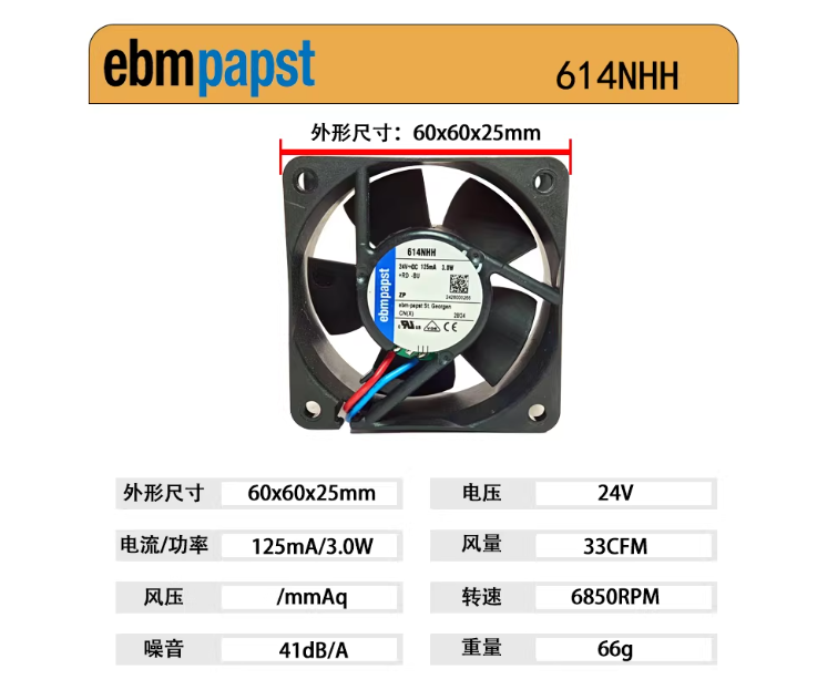 EBMPAPST全新原装正品 614NHH 24V 125mA 6025 服务器变频器风扇