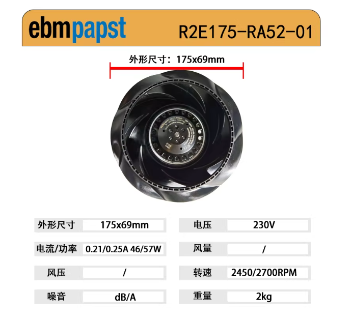 德国进口EBM R2E175-RA52-01 全新原装正品 175/230V涡轮离心风机