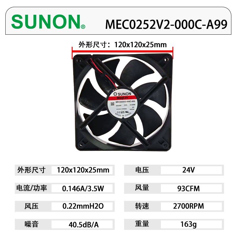 建准MEC0252V2-000C-A99原装正品SUNON DC24V 12025含油 散热风机