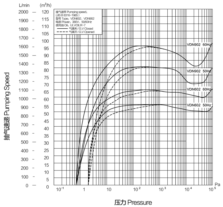 采用高吸气压强也能稳定运转的强制供油方式。选用油雾过滤器、油回收装置及耐热密封件后,就能在大气压以下的全压强范围内连续运转。