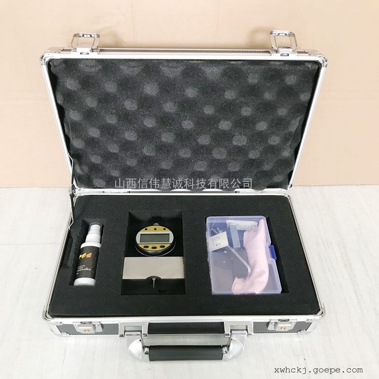 蓝牙数字凹坑深度测量仪所带附件:蓝牙数字凹坑仪、蓝牙传输发射器、、测试基面、仪器盒、小扳手、两个探针、一块电池、说明书、合格证、保修卡、清洗液50mL一瓶、擦拭布一块、手套一双、调零基块一块。